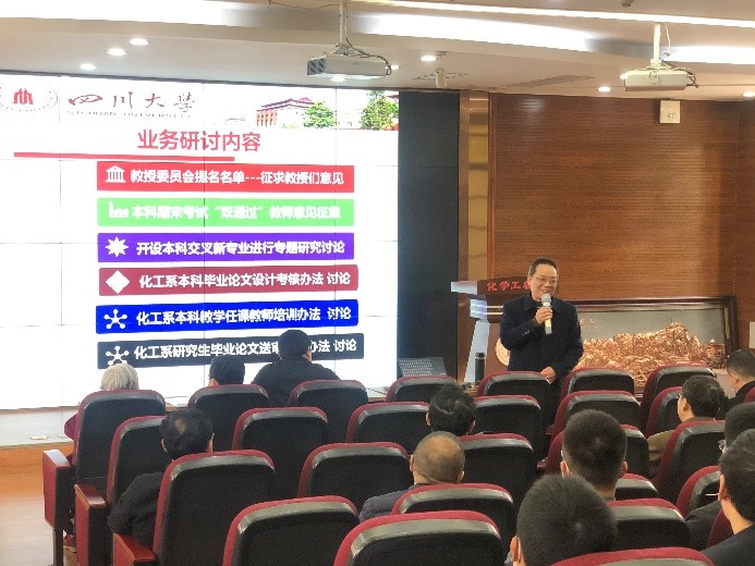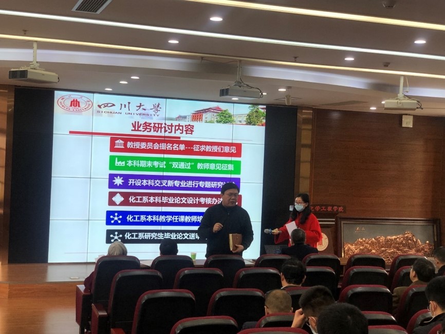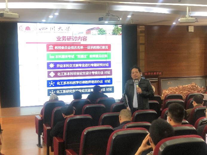 化学工程系全体教师于望江校区化工学院313会议室开展了政治学习和教学研讨。化学工程系党支部书记谢锐同志主持了政治学习,化工系主任袁绍军同志主持新学期教学研讨,化工系全体老师参加了此次学习。