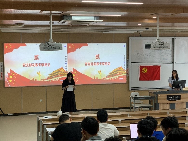 2018级本科党支部与本科雏鹰党支部在江安校区综合楼C座106教室,共同召开关于张浩宇等十三位同志转为中共正式党员的党员大会。本次支部大会由2018级本科党支部书记李忆雯同志主持。