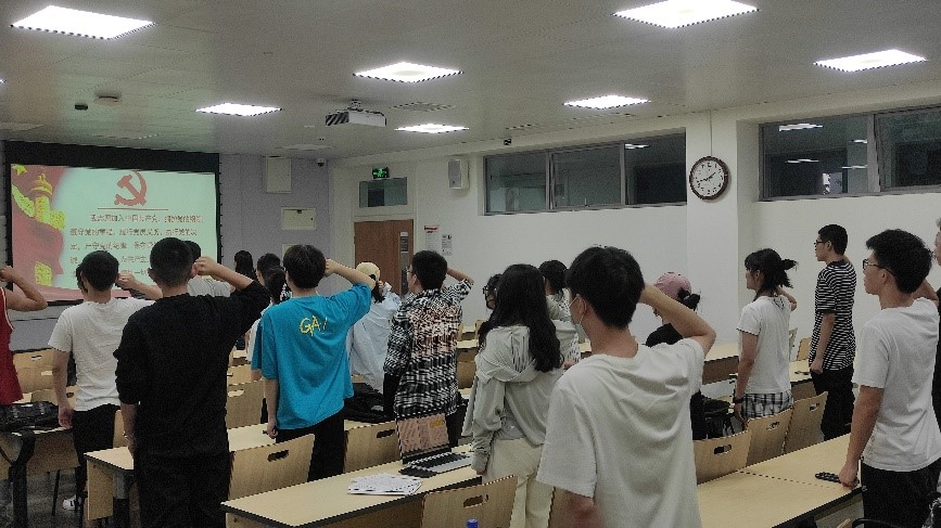 最后,李忆雯同志带领党支部全体同志重温入党誓词,并对十四位同志顺利成为中共正式党员表示了祝贺和寄予殷切希望:一是希望同志们要加强政治学习,提高党性修养;二是更加严格要求自己,从身边做起,在广大群众中充分体现党员的先进性,真正起到模范带头作用。