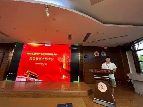 研究生膜科学与功能材料党支部于2023年5月29日晚19:30在化工楼313会议室召开了预备党员转正支部大会。本次大会由支部书记王坡主持,研究生膜科学与功能材料党支部全体党员参加,会议主要讨论了关于何平、郑梦娇、谢诗婷三名预备党员同志转正的相关事宜。