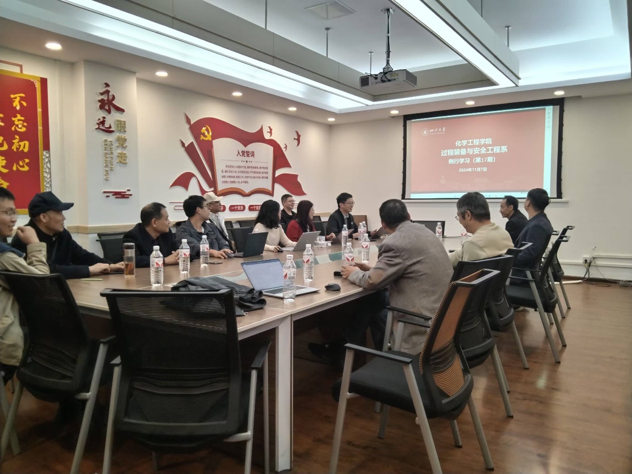 2024年11月8日下午,过程装备与安全工程系支部开展了政治学习和支部组织生活,本次活动由赵强领学。本期主要学习内容是习近平总书记在给中国海洋大学全体师生回信,在中共中央政治局10月28日下午就建设文化强国进行第十七次集体学习讲话,以及在省部级主要领导干部学习贯彻党的二十届三中全会精神专题研讨班开班仪式上的讲话等。