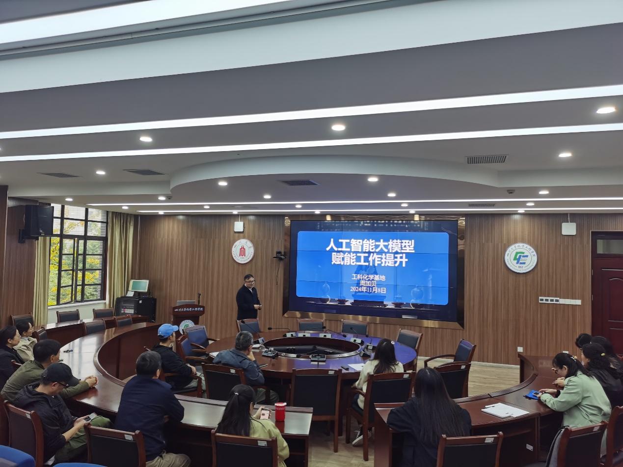 学习会上,特别邀请学院院长助理、周加贝副教授师以“人工智能大模型赋能工作提升”为题,向参会老师们展示了可用于工作效率提升的AI工具及其使用技巧。