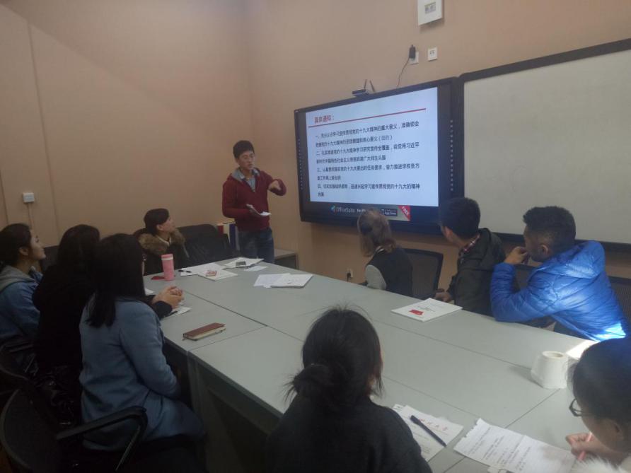 江安校区三舍会议室召开了预备党员转正会议暨十九大精神学习组织生活会,党支部书记李珍珍老师,党支部副书记李福林,以及支部成员全体党员参与了本次会议。
