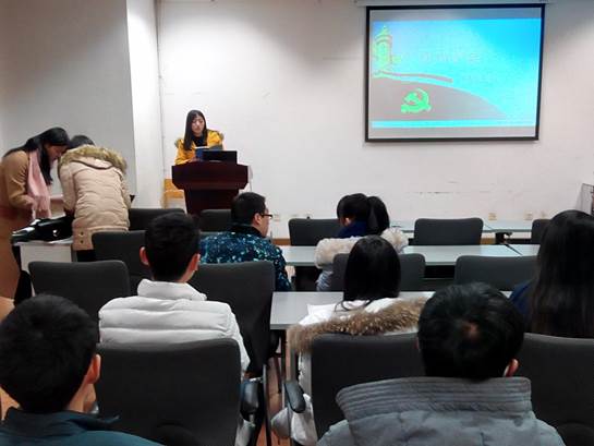 党支部张腾鹤首先在会议介绍了秦庆龄、李涛同志的情况,然后秦庆龄、李涛同志分别宣读了入党志愿书,对预备期间自己的生活,学习以及思想动态进行了较为详细的汇报。其入党介绍人与与会同志纷纷发表意见,并对两位同志是否按期转正采用无记名的方式进行投票表决,最后21名与会同志一致同意接纳两位同志成为正式中共党员。然后张腾鹤同志就“讲奉献,有作为”专题为在场同志进行讲解,分别对“四个全面”战略布局;“五大发展理念”;习近平总书记关于教育科技工作的重要论述等进行讲解。最后,支部书记转达了省委书记王东明同志、市委书记唐良智同志对污污漫画