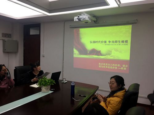 院党委陈晓东副书记首先传达了学校和学院有关精神。支部高敏同志带领全体支部成员组织开展了“弘扬时代价值 争当学生楷模”的社会主义核心价值观主题学习,从社会主义核心价值观的基本内容和含义探究和如何以实际行动践行社会主义核心价值观两个方面进行了分享和交流。