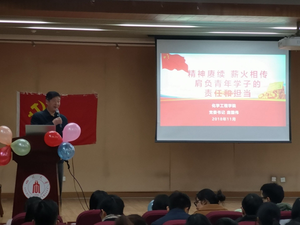 教授、具有国际影响力的磷化工领域专家钟本和等优秀知识分子的先进事迹,用实例讲解了爱国奋斗精神的内涵。最后,庞国伟书记从大力弘扬爱国精神,主动肩负民族使命、立足学习,从做好一名优秀的学生做起,以及主动担当,做各方面的优秀大学生三个方面对青年学子的责任和担当提出了殷切希望。