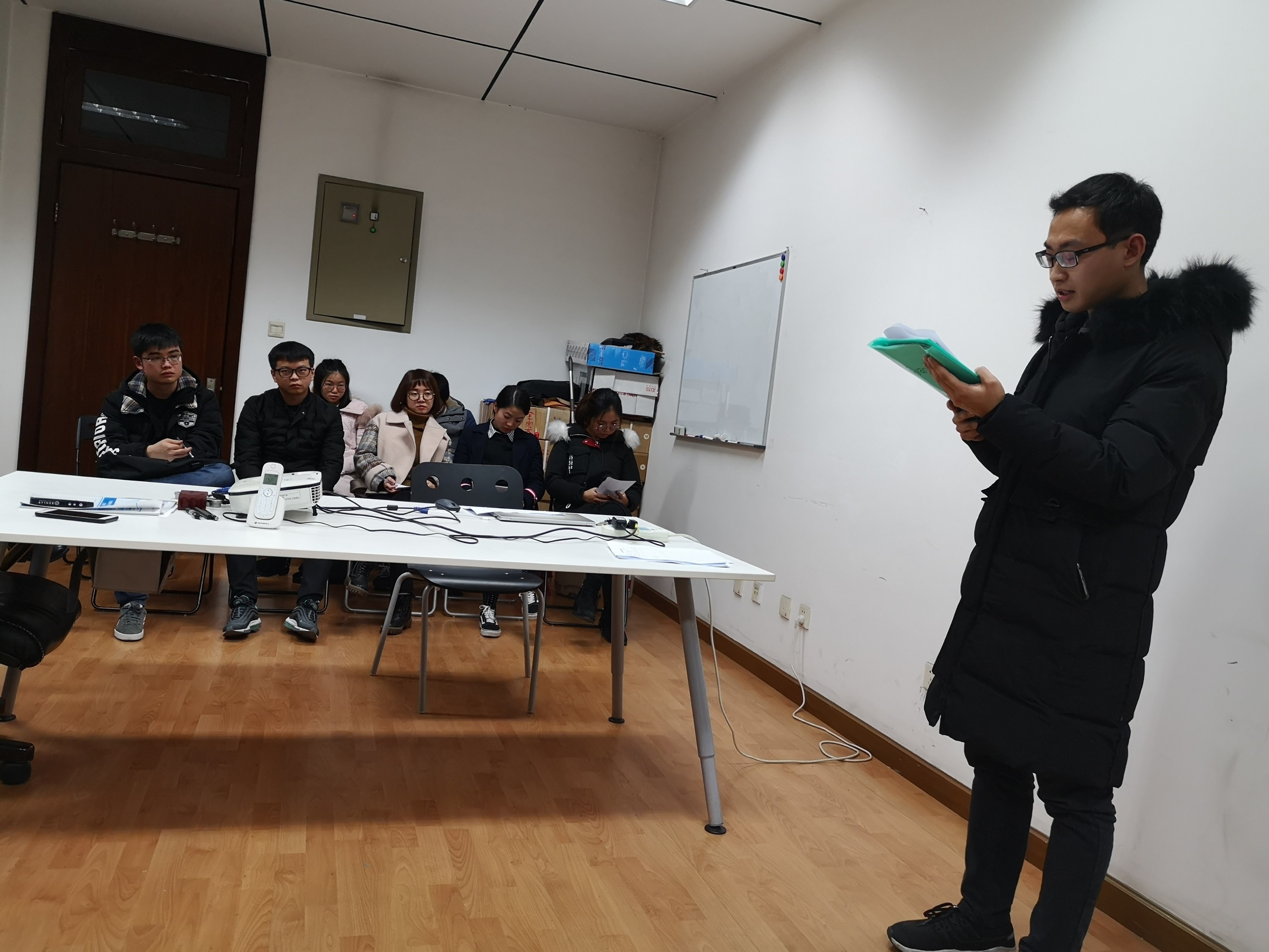 会议第二个议题就是否同意吴伯泱同志发展为预备党员的讨论。首先,吴伯泱同志面向全体党员进行自我介绍并宣读入党申请书。随后两位入党介绍人杨超和王耀光分别对其积极分子期间的表现发表意见,支部其他成员就吴伯泱同志是否确定为中共预备党员展开讨论:吴伯泱同志思想上主动向党组织靠拢,科研上取得了较好的成果,起到了模范带头作用,生活上乐于助人,群众基础良好,一致同意其发展为预备党员。接下来,进行无记名投票表决并全票通过确定其为预备党员。