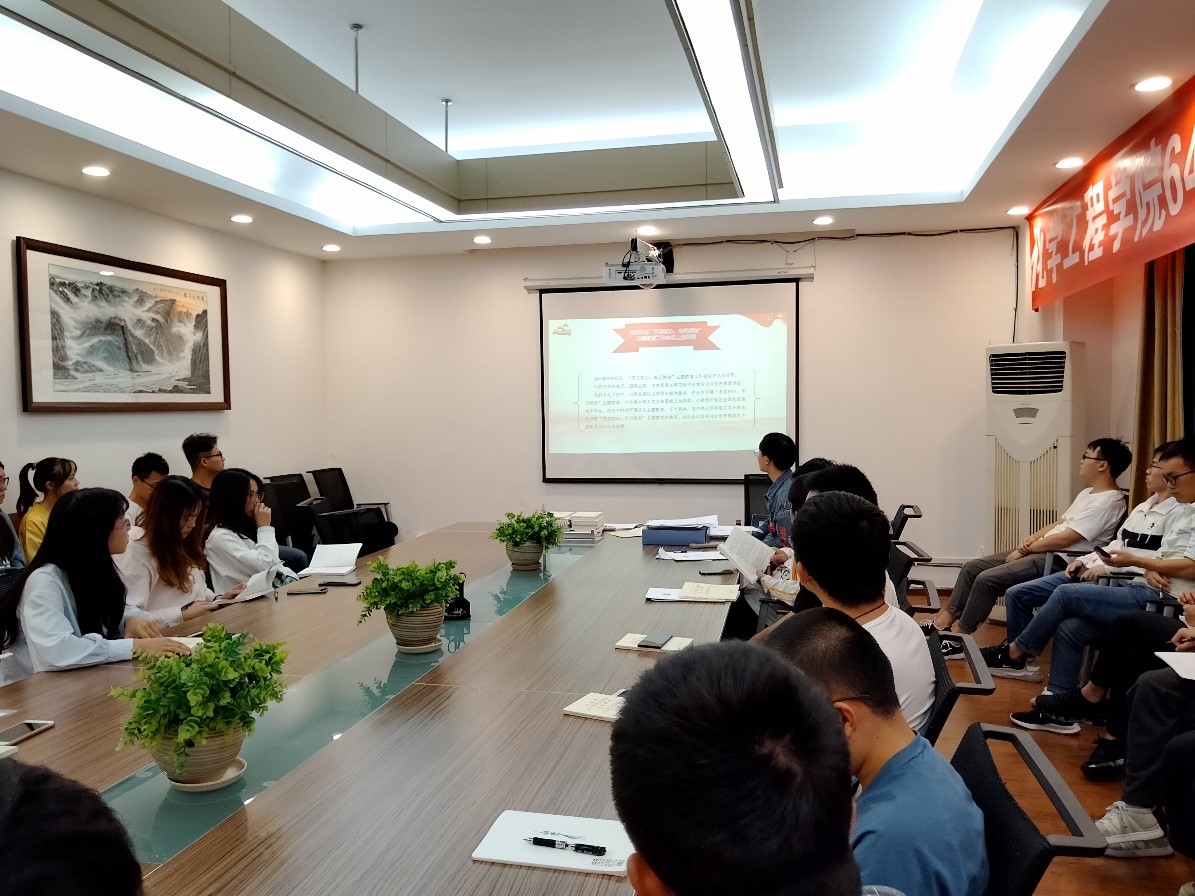最后,王勇同志总结发言,“初心”体现本质属性、价值追求,“使命”体现历史担当、奋斗目标。中国共产党人的初心和使命,就是为中国人民谋幸福,为中华民族谋复兴。作为学生党员,我们的初心是认真学习,学习党的知识理论,勇于实践,为集体、同学服务。具体来说要做到:第一,做到真正从思想上入党;思想上入党即是要求学生党员从思想上增强党的意识,不断加强自身的党性锻炼和修养,思想入党,既在组织培养,更在于个人自觉。第二,要勤于学习,与时俱进。作为化工专业的学生党员,首先是政治理论的学习,其次是专业知识的学习,应起模范带头作用,珍惜时间,刻苦科研,不断提高自己的专业水平和科学文化素养,掌握为祖国建设,为社会服务的过硬本领和竞争能力,更好地将自己的科研成果转化成社会主义事业的力量,施展自己的才华。第三,在社会实践中培养自己,作为学生党员,我们要积极参加学院组织的活动,走出校园,走入社会,在服务学校,服务班级,服务同学的同时,不断地培养和锻炼自己的综合素质。