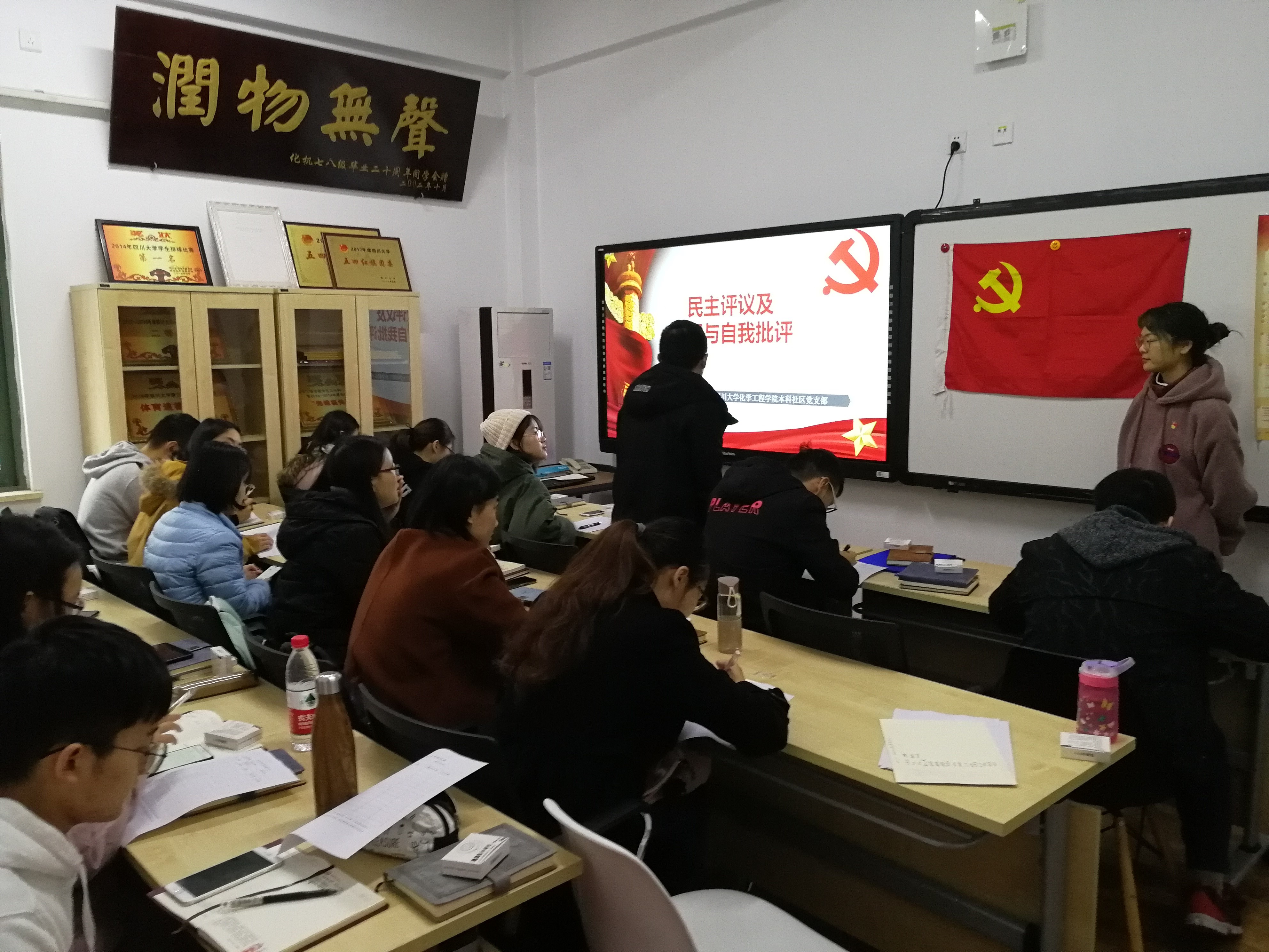 本科社区支部在江安校区第一基础教学楼A座306开展民主评议及批评与自我批评活动。此次党组织生活在各位同志的积极参与下取得了圆满成功。