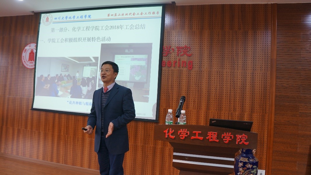 会议听取了学院党委书记庞国伟同志代表学院所做的《学院工作报告》和《财经工作报告》。庞书记在报告中全面回顾和总结了2018年全院工作。2018年是全面贯彻党的十九大精神的开局之年,是庆祝改革开放40周年,也是学院深化改革创新、加快推进“双一流”建设和校院两级管理体制改革的关键之年。学院全体师生深入学习贯彻习近平新时代中国特色社会主义思想和党的十九大精神,科学研究、人才培养、党建工作和队伍建设等方面都取得了显著成就:褚良银教授等获得2018年度国家技术发明奖二等奖;杰出教授钟本和先生获得“2018年度何梁何利奖”;学院获准国家重大项目2项,直接经费1800多万元。由钟本和教授带领团队入选全国首批“全国高校黄大年式教师团队”;梁斌教授获得国家级教学成果奖一等奖,宋航老师当选“四川省优秀教师”。同时,我们的党员师生充分发挥先锋模范作用,化学工程系党支部成功入选“全国党建样板支部”,研究生过程装备与安全科学党支部获得全国高校“百个研究生样板党支部”,党员罗杰同志获评“2017年度四川省优秀共青团员”和四川“勤学奋进新青年”。庞书记也代表学院对全院师生员工和离退休老同志在过去一年对于学院工作的帮助和支持表示感谢。随后,庞书记结合学校“两个伟大”的全面推进和校院两级管理体制改革,提出了2019年的工作展望,他希望全院师生共同努力,集中精力抓好一流拔尖人才、一流师资队伍、一流学科平台、一流成果转化机制、一流国际合作交流、一流环境条件建设,全力推进一流学科、一流专业建设,为早日建成一流化工学院而努力奋斗!