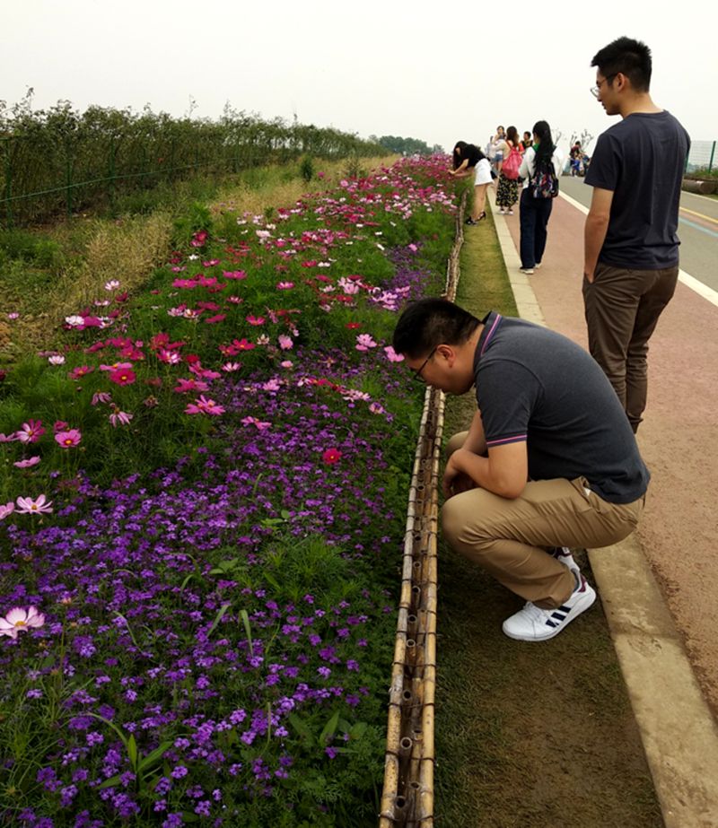 学工小组的老师们在此次“空港花田”踏青活动中,暂时抛开繁忙工作的压力,尽情享受这难得的初夏悠闲时光,参观调研了了胜利镇云华新村新农村建设;漫步在空港花田“彩虹”绿道,观赏由格桑花、金鸡菊、天人菊、二月兰、虞美人等构成的228.5亩花带,与天空中呼啸而过的飞机形成的靓丽风景线。
