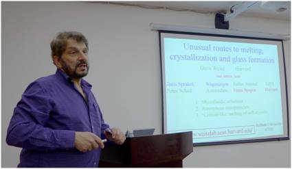 David A. Weitz教授是美国哈佛大学(Harvard University)工程与应用科学学院的著名教授,是美国科学院院士、美国艺术与科学学院院士,学术成就斐然。Weitz 教授1978年在美国哈佛大学获得博士学位,1978-1995年期间在美国Exxon Research and Engineering Co.任研究科学家,1995-1999年期间在美国宾夕法尼亚大学(University of Pennsylvania)任教授,1999年至今在美国哈佛大学工程与应用科学学院任教授,2001年至今兼任美国哈佛材料研究科学与工程中心主任,2006年至今兼任美国哈佛大学系统生物学系教授。迄今,Weitz教授已发表高水平学术期刊论文500多篇,其中在Science, Nature, Nature Materials等国际顶级刊物上发表30余篇,申请发明专利60余项,应邀在世界各地做过500多次邀请学术报告。Weitz教授是国际上软湿功能材料、胶体微粒系统、生物物理与生物材料、微流控等研究领域的知名专家,学术造诣颇深,具有很高的学术地位和非常大的国际学术影响力。