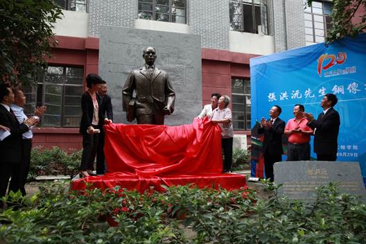 化工学科创始人张洪沅先生铜像揭幕仪式在望江校区正行楼前隆重举行。污污漫画