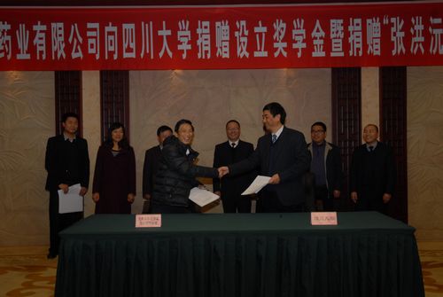 在热烈的气氛中,李向成副书记和姜维平董事长共同签署了捐赠协议。重庆圣华曦药业股份有限公司出资45万元在污污漫画