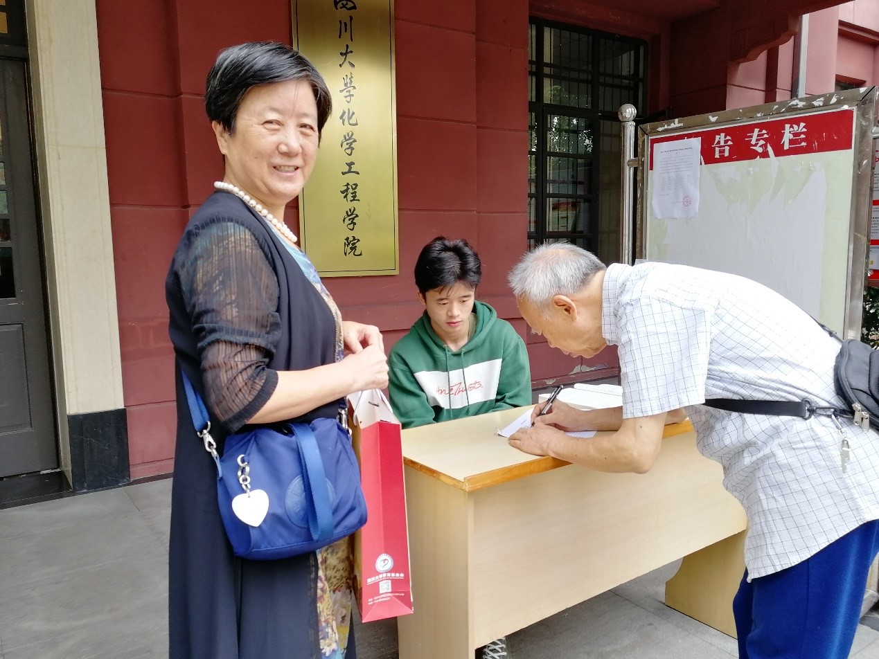 9月29日上午8:00,化工学院门口开始热闹起来,参加返校活动的校友们陆续报到。化工楼前欢笑声此起彼伏。他们在这一天重回到川大,与老友重聚、与同窗叙旧、与母校同庆盛事,依然有着当年风华正茂的光彩。不管是哪一届的校友,在回到化工学院门前时都非常兴奋,脸上始终荡漾着笑容,他们重走当年走过的路,望着焕然一新的二教,欣赏着校园内陌生而又熟悉的一草一木,感慨万分。