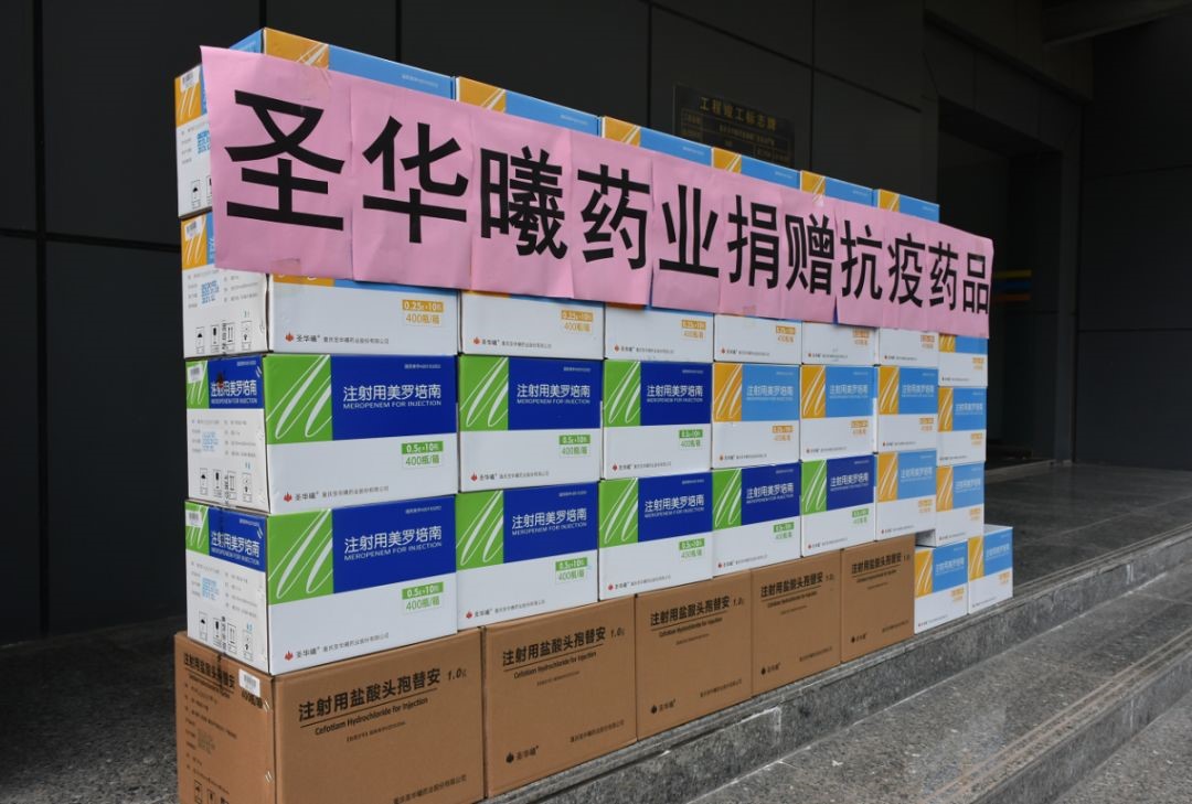 为进一步助力湖北武汉疫情防控,2月19日,重庆圣华曦药业向湖北武汉医院捐赠抗感染药品,总价值55万余元。重庆经开区党工委委员、管委会副主任张进参加捐赠仪式。据悉,这批抗感染药品包括0.5g美罗培南1600支(8件)、0.25g美罗培南2800支(22件)、1.0g头孢替安2000支(5件),将定向捐赠给武汉钢铁(集团)公司第二职工医院、武汉市第九医院、黄冈市中心医院。重庆圣华曦药业副董事长汤宗钢说,作为医药行业企业,在抗击疫情的特殊时期,应承担社会责任,义不容辞贡献力量。公司心系湖北抗疫一线,将生产药品的清单提供给当地医院,以上三家医院回复,现在急需抗感染药品。公司立即组织员工,准备药品捐赠,“此次捐赠的这三种品类的药品是公司复工前生产,复工后检验的第一批产品。”