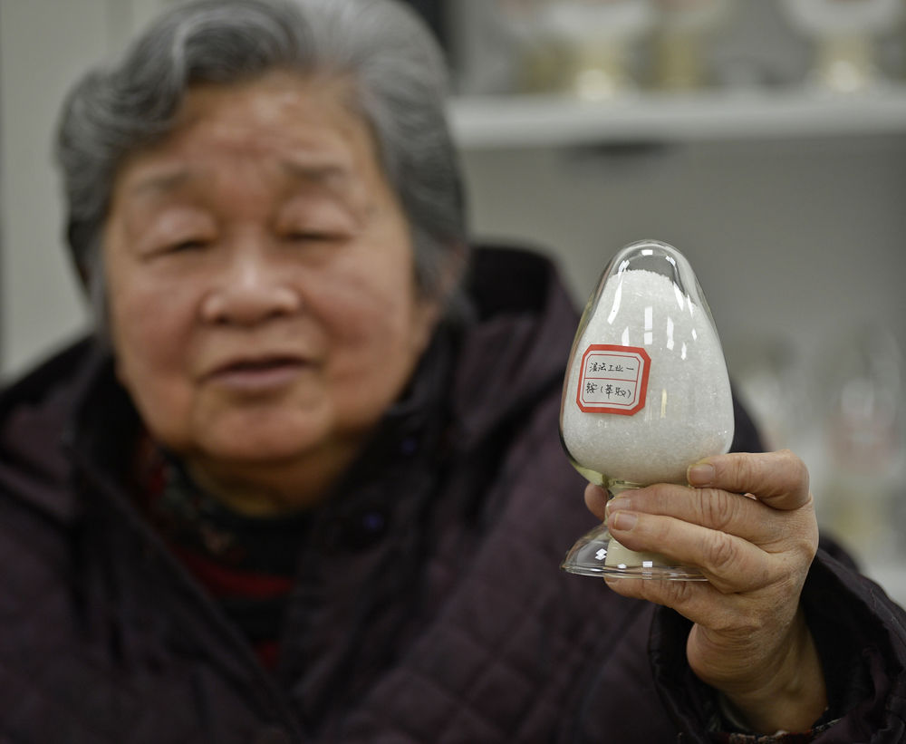 1月8日,钟本和展示用最新工艺制备的高纯度磷铵。