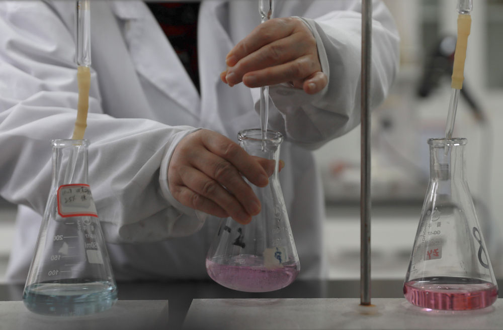 制备分析室里进行化学分析实验。
