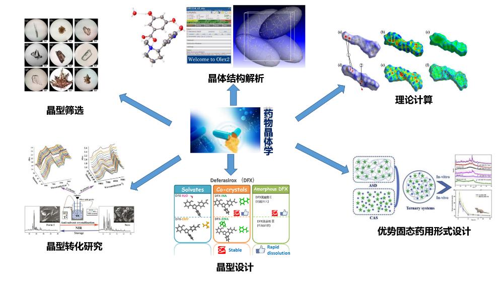 晶型、单晶、共晶、多晶研究是药物一致性评价和新药研发的重要环节,不同的药物固体形态具有不同的熔点、溶出、稳定性等理化性质,从而影响药物的药效、毒副作用和生物利用度。通过对结晶和转晶过程研究,筛选优势晶型,明确晶体结构,为后续优势固态药用形式设计提供基础。
