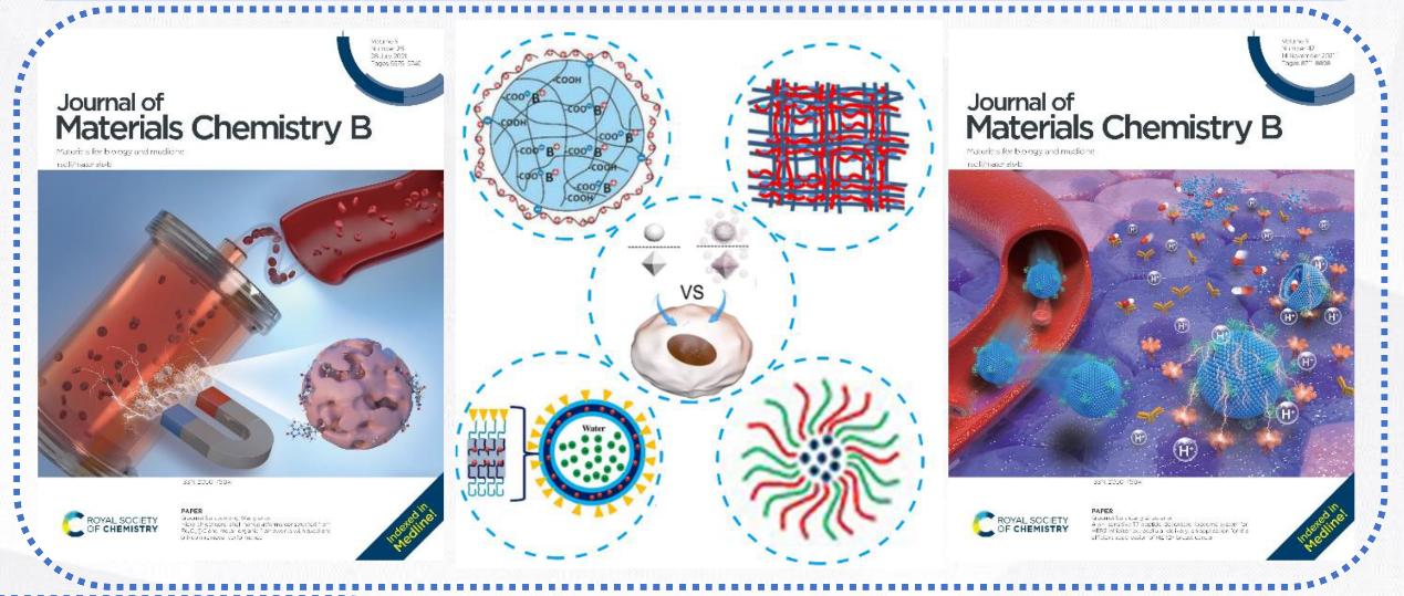 [7] Shuangshuang Zhang,Qiaomei Sun*, Xu Peng, Na Gan,Ludan Zhao,Zili Suo, Gang Zhao*, Hui Li.A pH-sensitive T7 peptide-decorated liposome system for HER2 inhibitor extracellular delivery: an application for the efficient suppression of HER2+ breast cancer.Journal of Materials Chemistry B, 2021, 9:8768.(封面文章)