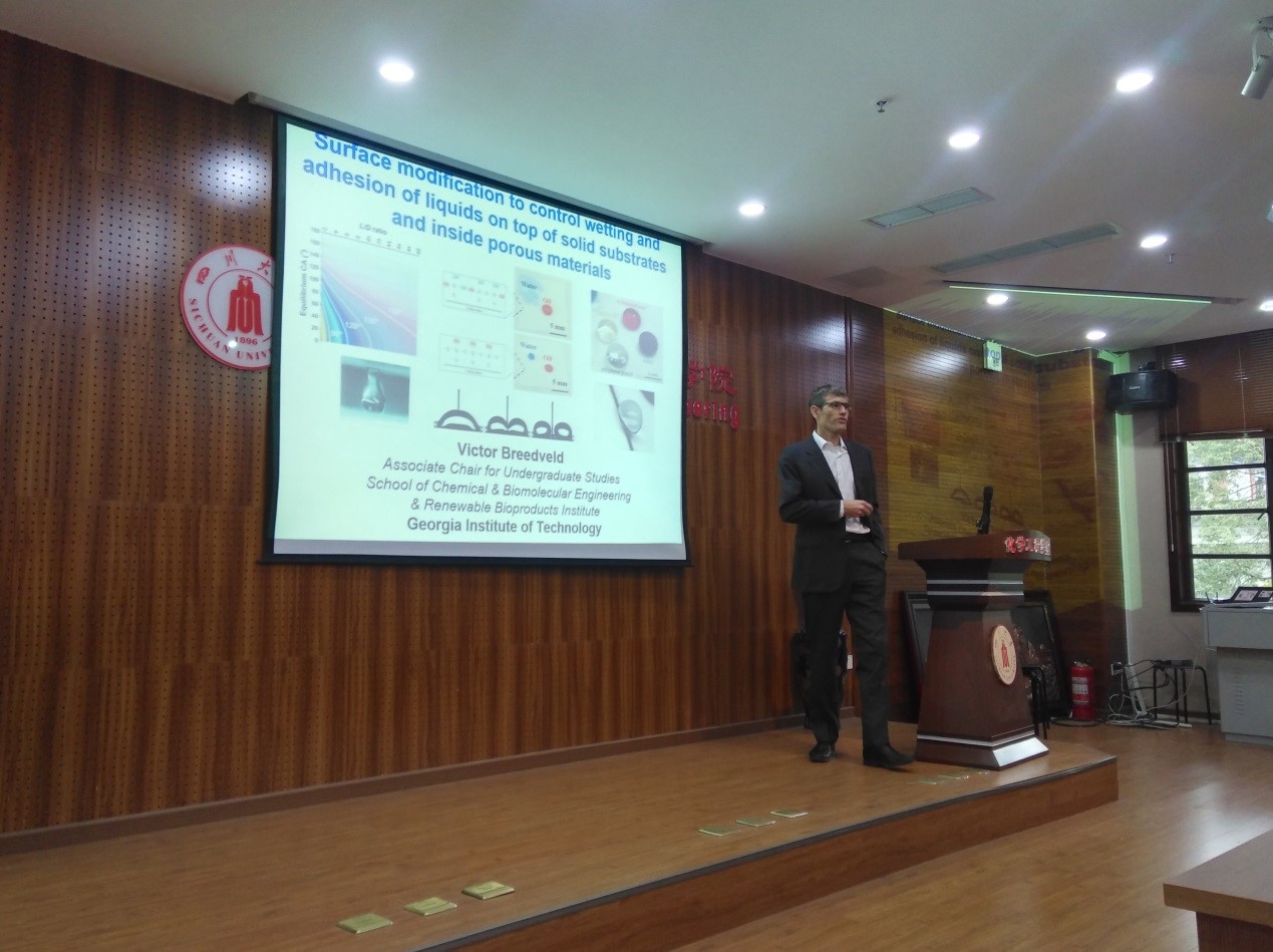 313报告厅作了题为《Surface modification to control wetting and adhesion of liquids on top of solid substrates and inside porous materials》的学术讲座。污污漫画