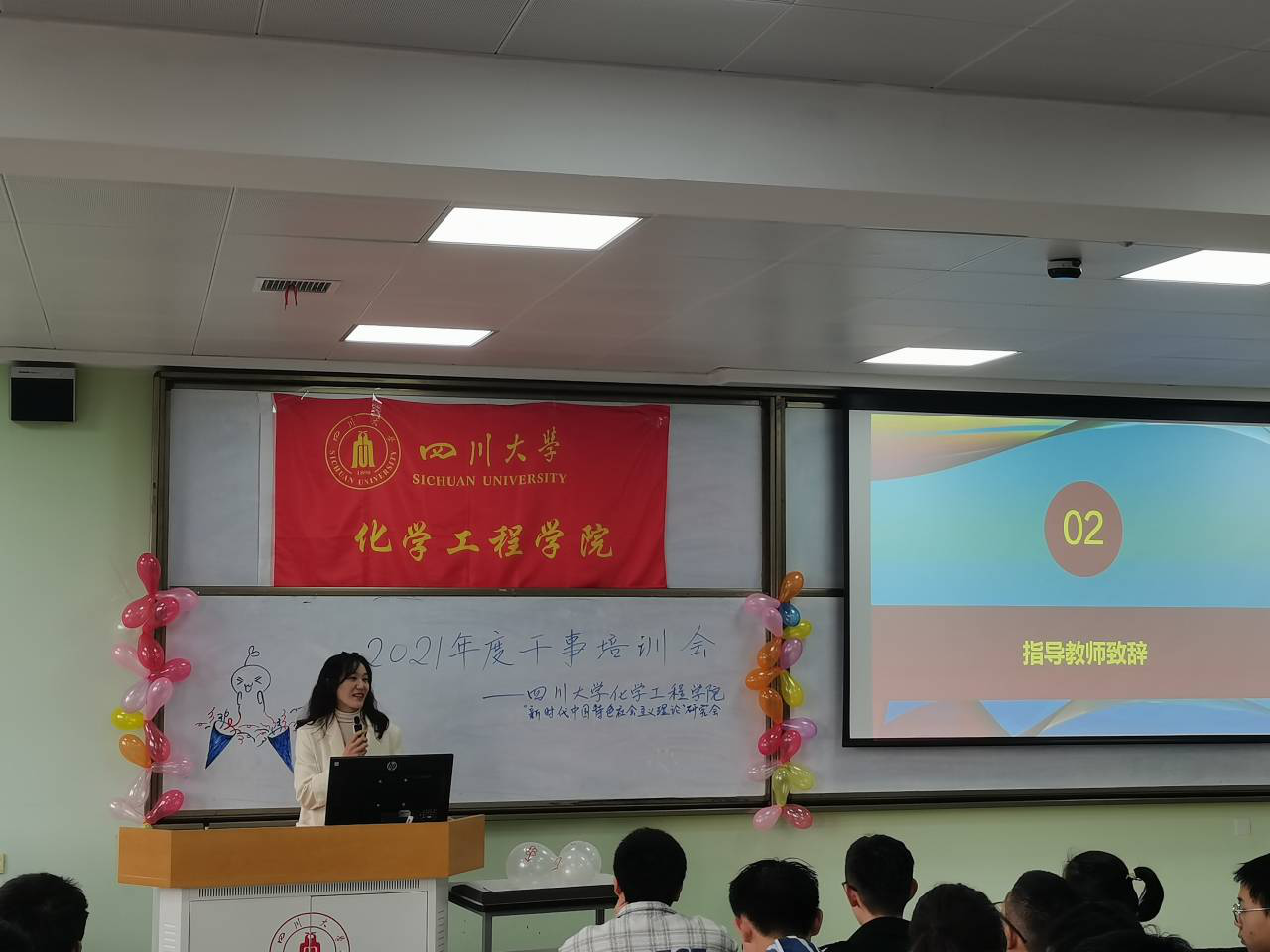 之后干事代表讲述了加入新中会至今的感受,展现了21级干事对大学生活的憧憬以及对于新中会大家庭的热爱。