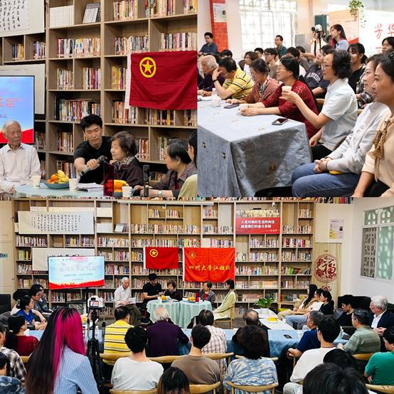 在新北村芳华服务中心内,大家聆听老革命金作美老师的“红色课堂”,分享了她的革命启蒙人——她父亲金善宝前辈、她在上海地下党和解放军的工作经历、她在俄罗斯留学所感受到的中俄友好建交与深厚情谊、她回到成都工学院对钒钛磁铁矿的创新性研究成果。也向我们讲述着一个红色书包、一把手枪、一块奶酪的故事,让那段信仰如磐的光辉岁月,鲜活地展示在同学们眼前。
