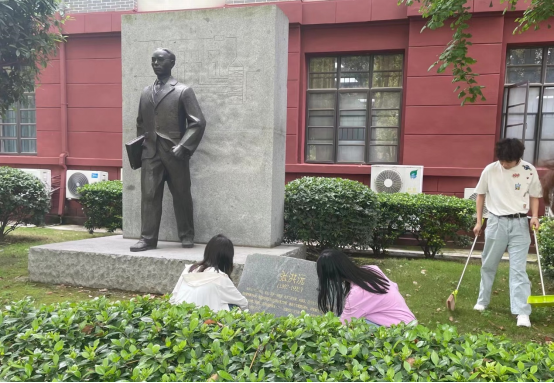 公共区域,集中清扫,共同打造美丽校园。在学院公共卫生区域,研究生一同清洗了张洪沅先生铜像,打扫了学院门口草坪和道路卫生,共同做好学院门前卫生,迎接五一假期。