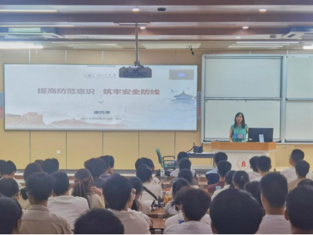 望江、江安、华西三个校区的校园环境状况引入,围绕国家安全、消防安全、交通安全、网络信息安全、财产安全和人身安全六个方面展开本次讲座。