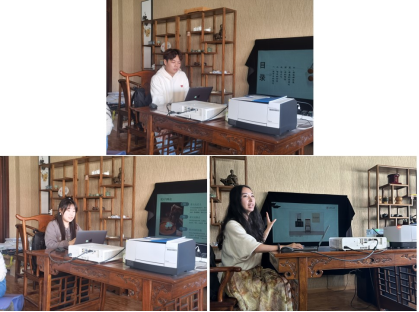 的刘思琪从茶叶出发,向各位同学讲解了茶叶在品茗欣赏之外,从茶叶中提取的茶多酚也与我们生活息息相关,在医药、化工领域有广泛的应用。历史文化学院的樊欢老师以茶作为载体,向各位同学讲解了茶与当代艺术结合的创作案例,分享了艺术家张羽的作品,探讨了当代艺术的表现形式与内涵。