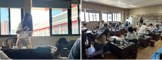 活动开始,在悠扬的音乐中,历史文化学院的樊欢老师让同学们舒缓身心,以平和的心态静坐于茶桌前。首先,樊欢老师简单地介绍了茶文化实验室的情况,并展示和讲解了藏茶与川茶的区别。随后,在樊欢老师的指引下开始了泡茶的工序。同学们从烫杯到取茶,再到摇香洗茶,唤醒茶叶香气,去除杂质,最后冲泡出汤,感受着茶的香气,相互对饮起来。