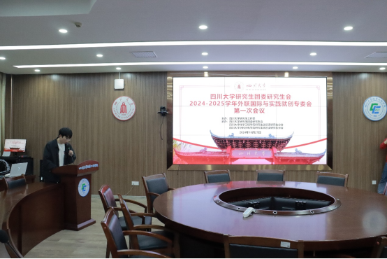 楼312召开。本次会议由水利水电学院外联部长彭益主持,校研究生会外联国际与实践就创分管主席王宏涛、外联国际中心主任赵灵虎、实践就创中心主任刘婕妤等为外联国际与实践就创的年度工作与考评细则做出了介绍与阐述,并通过现场研讨答疑,为同学们答疑解惑。