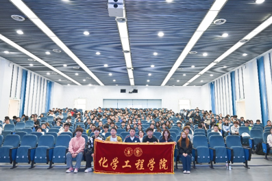 院长郭孝东教授受邀作为主讲嘉宾,面向来自10个学院的近400名学生进行授课和交流互动。围绕党的二十大报告擘画的蓝图,郭孝东教授深入浅出地讲解了化工学科服务“双碳”与新能源战略的现实路径,帮助同学们理解了自身专业在时代发展中的巨大机遇。