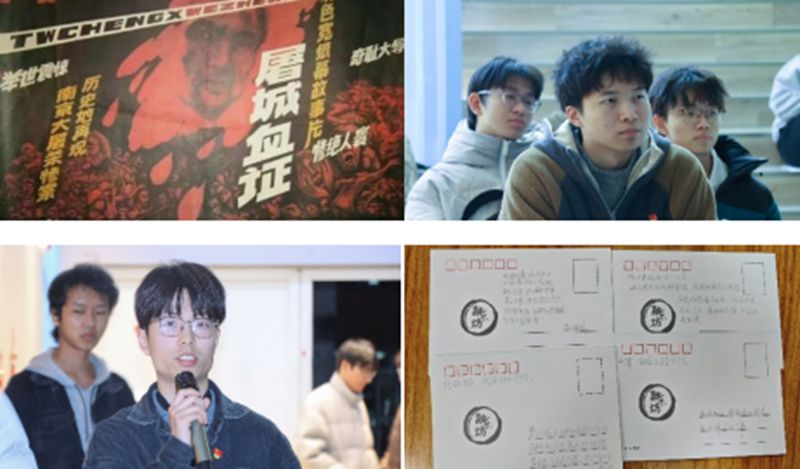 在静谧的氛围中,全体人员集中观看了影片。银幕上侵略者的残暴行径令人愤慨,爱国志士的不屈抗争令人动容,一个个震撼人心的场景让现场观众深受触动,更深刻体会到和平的来之不易。观影结束后,学生党员黄小峰分享了观后感,他表示,先辈们以血肉之躯守护历史真相的壮举令人肃然起敬,作为新时代青年党员,必须铭记民族伤痛,珍爱和平,将悲痛转化为奋进力量。随后,现场成员纷纷拿起明信片,将对遇难同胞的缅怀、对和平的期许落笔成文。