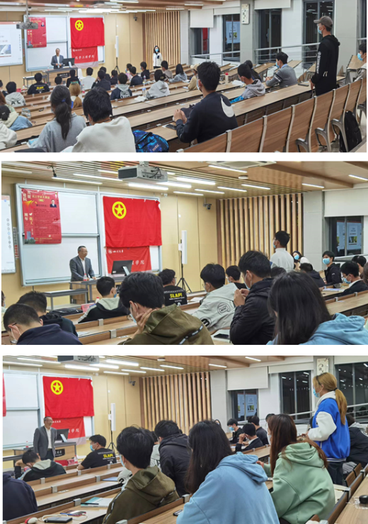 副院长郭孝东、党委副书记姜利寒、2021级新生辅导员李珍珍也出席了活动,此外2021级本科生和部分高年级学生近400人(线上+线下)参与了本次讲座。