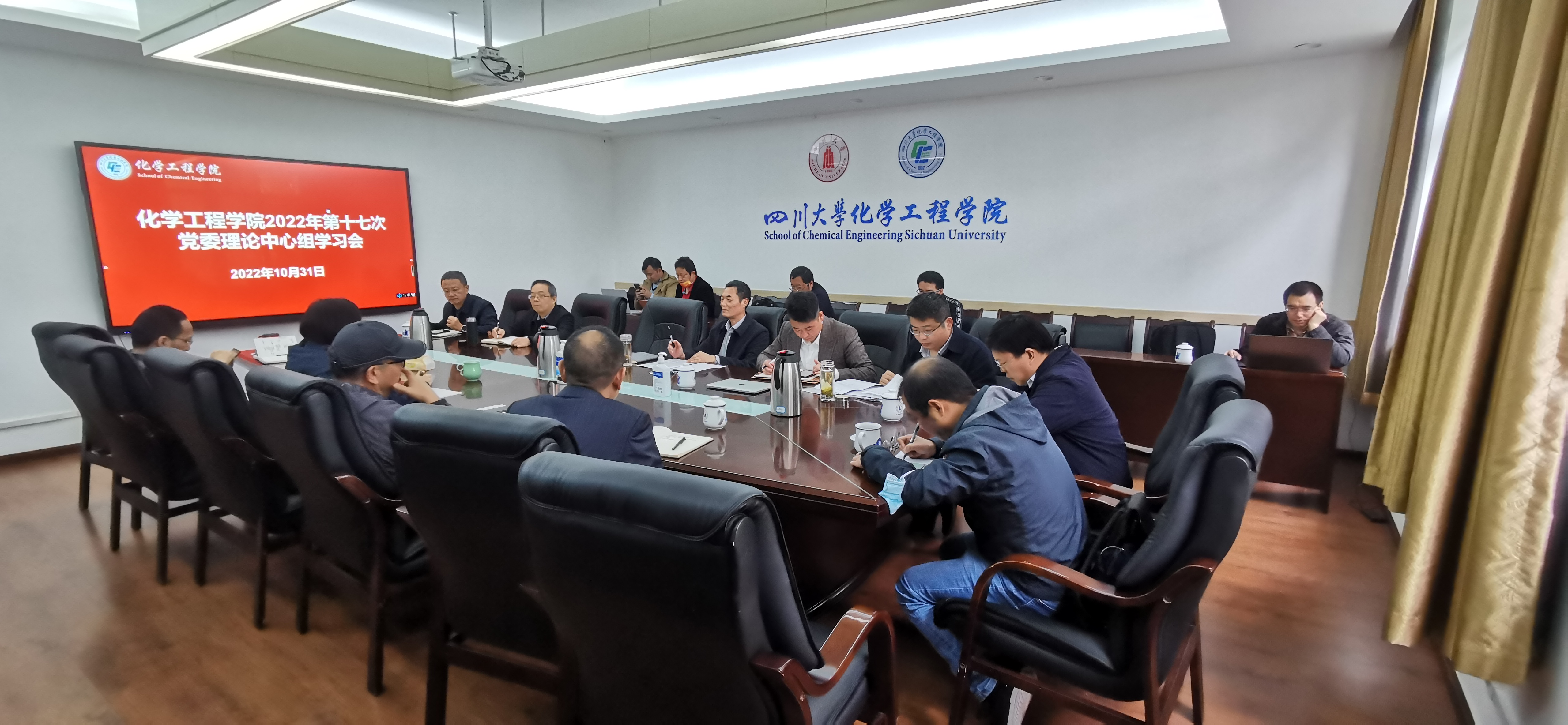党委理论学习中心组在望江校区化工楼235会议室组织召开了党的二十大精神专题学习会。学院全体领导班子成员、党委委员、纪委委员、工会主席、专职组织员、系(基地、中心)主任、院长助理和科级干部等参加会议,会议由赵长生院长主持主讲。
