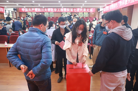 第七次代表大会在望江校区正行楼(西二教)313报告厅隆重举行。李天友代表学院党委向大会作了题为《牢记立德树人初心 坚守科教兴国使命,团结一致加快推进一流化工学院建设》的报告。