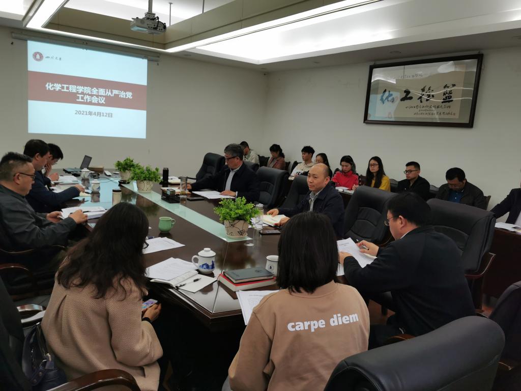 在望江校区化工楼235会议室组织召开2021年度全面从严治党工作会。学院全体班子成员、工会主席、专职组织员、纪委委员、各系级单位负责人、全体支部书记和科级干部参加会议。会议由学院党委副书记兼纪委书记李天友主持。