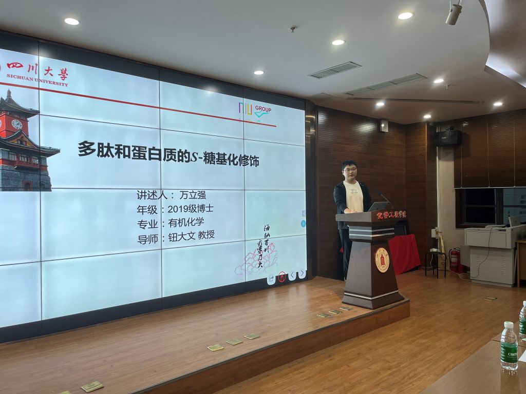 生物治疗与国家重点实验室2019级博士研究生代表,中共党员万立强同志介绍了多肽和蛋白质的糖基化修饰在生理过程以及药物研发领域的重要性。结合自己开发和创新了两代化学方法的经历,他说到,“士不可以不弘毅,任重而道远”,作为一名科研工作者,当你经历阻碍和迷茫时,应当对自己的科研价值观和人生观有深刻的定位和认知,冲破自己的舒适圈。以博爱、担当、责任、格局、胸怀为人生笺言,在最美好的青春年华,为国家、为民族贡献自己的力量。