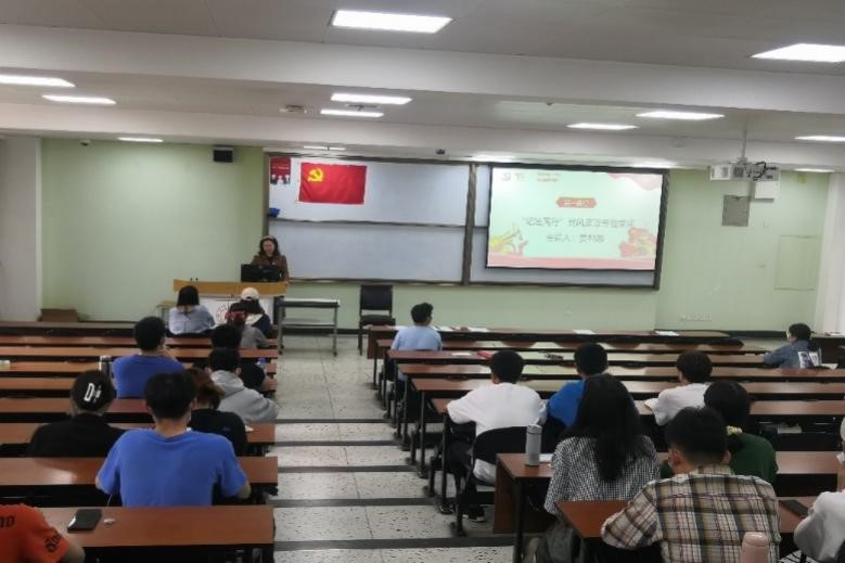 江安校区一教B301教室,开展了“树新风正气,创廉洁化工”主题党日活动。本次活动由本科社区党支部书记李珍珍主持。
