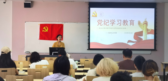 会议第一部分,由党支部书记雷金凤同志进行党纪学习教育的授课,并带领支部成员共同学习《中国共产党纪律处分条例》。经党中央同意,自2024年4月至7月在全党开展党纪学习教育,习近平总书记指出,要扎实开展党纪学习教育,引导党员、干部真正把纪律规矩转化为政治自觉、思想自觉、行动自觉。雷金凤同志在授课过程中强调了开展党纪学习教育的重要性,并要求支部成员课后对《中国共产党纪律处分条例》进行逐章逐条、理论联系实际的深刻学习,切实做到自觉遵守党纪,与以习近平同志为核心的党中央在思想和行动上的保持高度一致。
