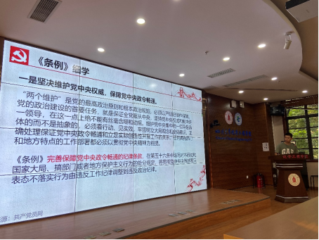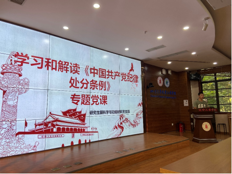 研究生膜科学与功能材料党支部于2024年5月23日在望江校区化工楼313会议室开展了学习与解读《中国共产党纪律处分条例》专题党课,深入理解条例的精神实质。