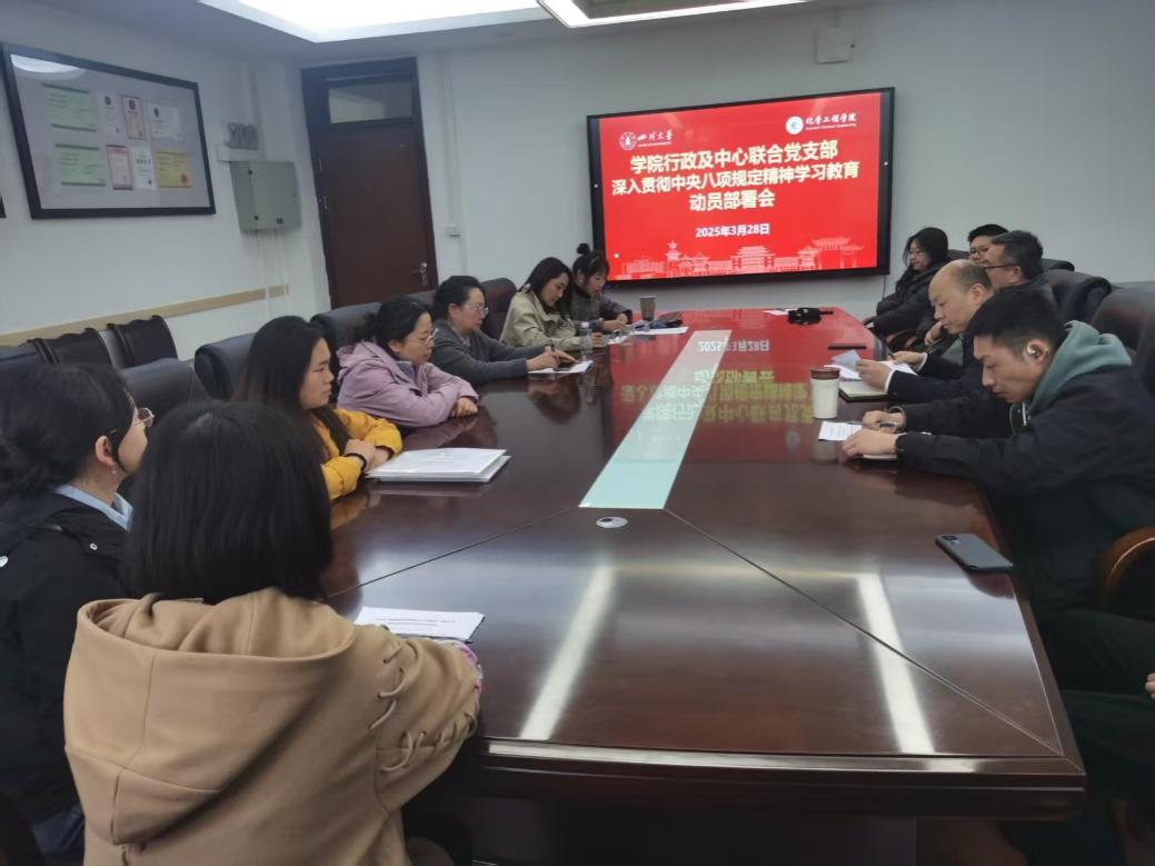 2025年3月28日下午,污污漫画 全体行政老师和工程实验教学中心全体实验技术人员在望江校区化工学院235会议室开展了政治学习暨贯彻落实中央八项规定精神学习教育动员部署会。学院党委书记李天友参加学习会。本次会议由高敏同志主持。